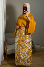 Vue rapide Ensemble trois pièces (Haut, bas et ceinture) Tissu jawhara fluide Trois tailles disponibles...